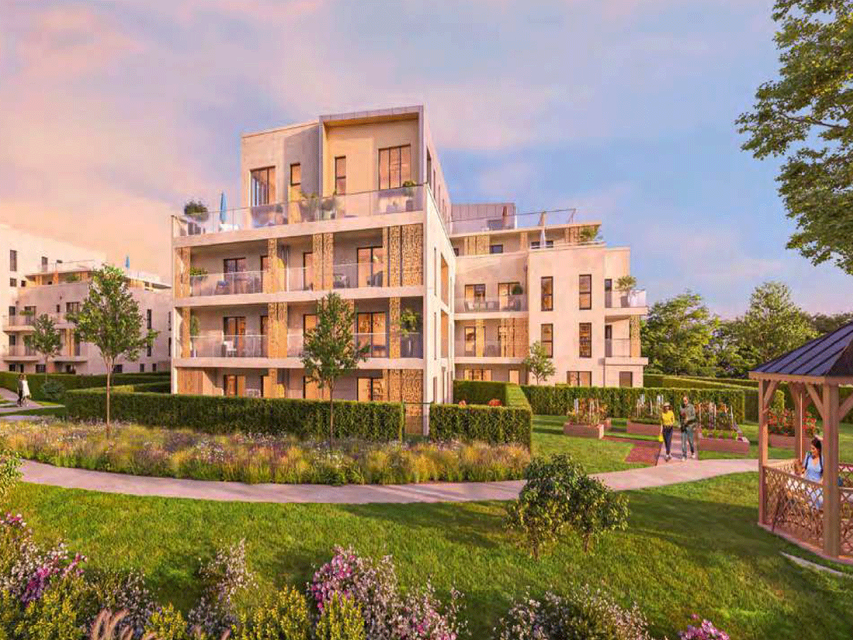 Les trois résidences Scintilla, Calypso et Iris, aux identités remarquables sont reliées par un cheminement piéton central et par des terrasses privatives. Les promenades, ponctuées de bancs, mènent les résidants d’une placette à un kiosque au charme bucolique, en passant par deux potagers partagés. Le premier se situe à proximité des résidences Calypso et Scintilla. Le second se trouve entre la résidence Iris et une noue au tracé délicat. Un véritable cocon de nature de 2 000 m2, aux essences variées, propice aux temps de pause comme aux moments de convivialité.